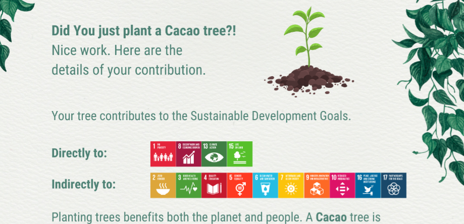 This certificate contains information about your tree, the caretaker families and the SDGs your tree contributes to, all signed by our CEO.